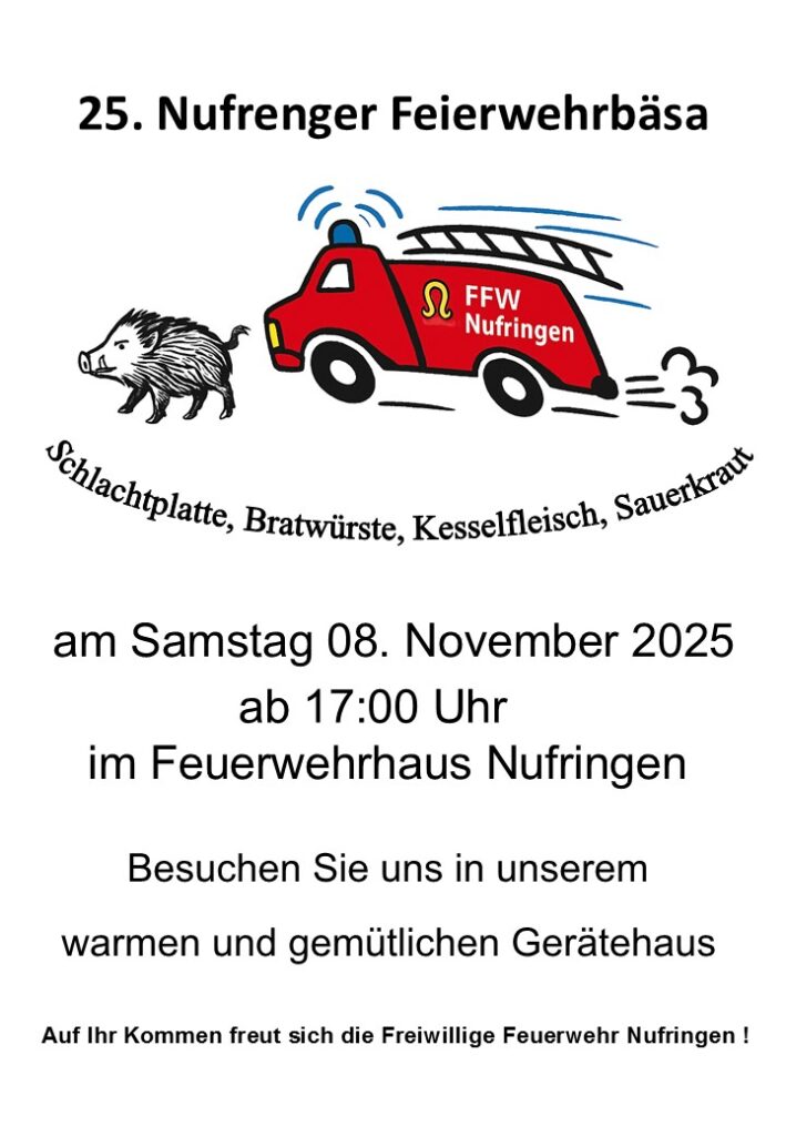 Verpassen Sie auch dieses Jahr nicht unser schon traditionelles Schlachtfest. Unser Feuerwehrhaus wird herbstlich dekoriert und warm beheizt sein. Dazu servieren wir Ihnen ein rustikales Speisenangebot. Lassen Sie sich einladen und genießen Sie ein paar schöne Stunden am Samstag, den 08.11.2025 ab 17 Uhr in der Schulstraße 3.