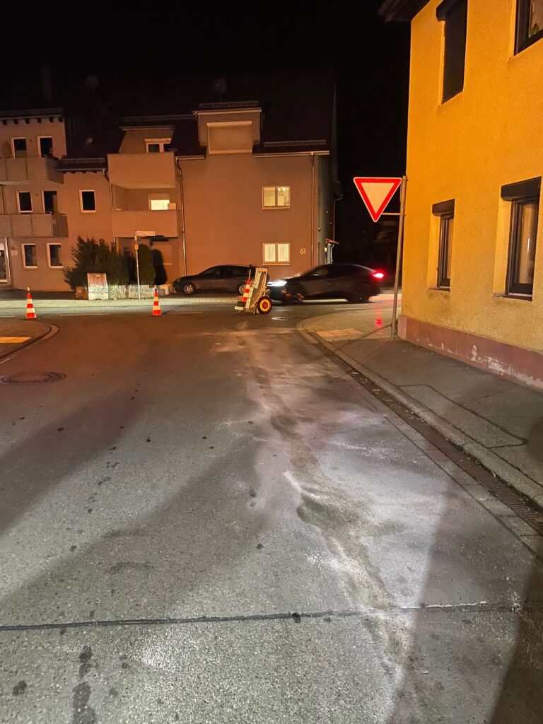 Im Industriegebiet und der Ortslage wurde eine längere Dieselspur vorgefunden. Die Feuerwehr streute die größeren Ölflecken mit Ölbindemittel ab.
